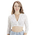 Damen V-Ausschnitt Trachtenbluse Langarm Spitzebluse Weiß 32-46(21JB58)